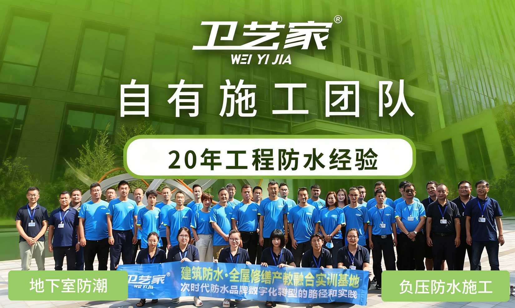 卫艺家防水,创始人专业防水服务20年,提供漳州负压防水施工等专业防水工程施工,自有施工团队,20年工程防水经验。卫艺家防水凭借创始人 20 年的专业积淀和国家高新技术企业的技术实力,以负压防水技术为核心,为各类建筑渗漏难题提供系统性解决方案。作为拥有二级防水施工资质、30 余项国家专利的正规企业,卫艺家已累计完成超 8000 个防水项目,从别墅地下室负压防水工程、大型建筑屋面防水到老旧小区平改坡防水工程,用 "背水面主动防渗" 的技术突破,重新定义了防水工程的标准。